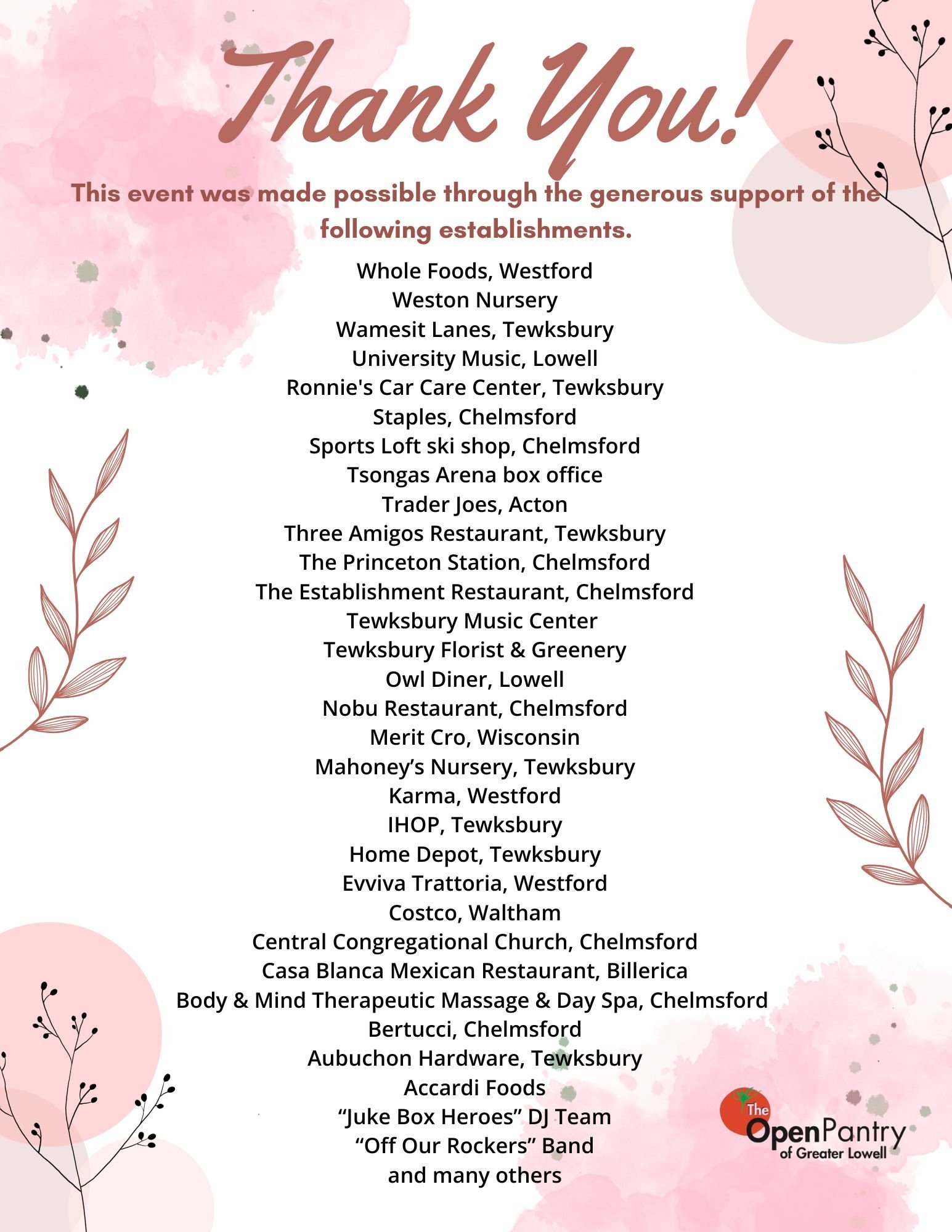 The following items and gifts certificates were generously donated by businesses, organizations, and individuals. We extend our sincere thanks to our donors for their generous support.